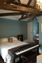 Pictures of our 5th Arrondissement Paris apt, featuring living room with "Cuisine Americain," bedroom, 2 bathrooms, and a sleeping loft.